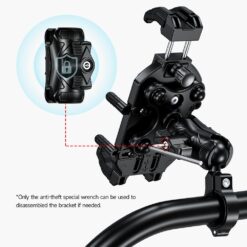 Universalus telefono laikiklis Ulefone Armor Mount Pro AM01 – patikimas ir tvirtas sprendimas dviračiui, motociklui ar paspirtukui. Suderinamas su 5,4″ – 7,2″ ekranų dydžių telefonais. Jis pasižymi 360° pasukimu, todėl telefoną galima lengvai pritaikyti patogiausiam žiūrėjimo kampui. Integruotas vibracijos slopintuvas užtikrina stabilumą net važiuojant nelygiais keliais, o didelio greičio saugumo užraktas patikimai išlaiko įrenginį vietoje. Papildomai įmontuotas inovatyvus varžtas nuo vagysčių, todėl laikiklis yra puikus pasirinkimas aktyviam naudojimui mieste ar kelionėse.